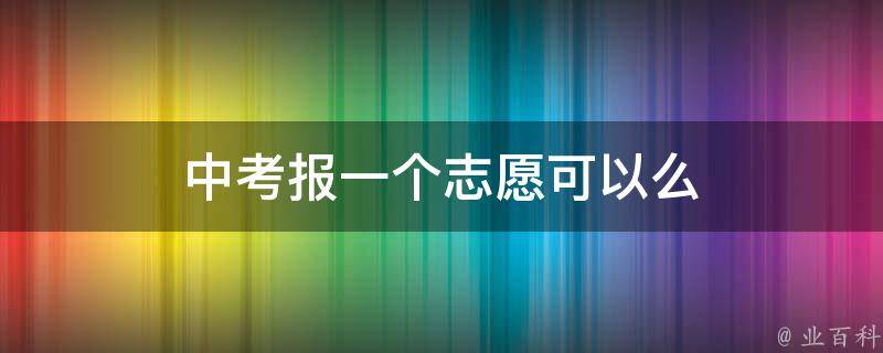 中考报一个志愿可以。考生可以根据自己的意愿只填报一个批次,中考志愿一共分为四个批次,每个批次有不同的学校和专业可供选择,考生可以根据自己的兴趣和能力选择适合自己的批次,并填报志愿。