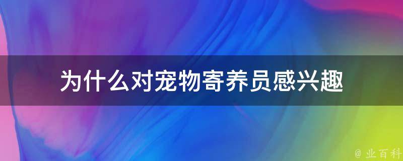 3、获得经验和技能发展:成为一名宠物寄养员可以提供与不同种类、品种和个性的宠物互动的机会,可以帮助提高在与动物交互方面的技能。