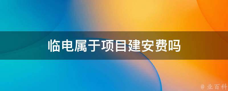 临电属于项目建安费,在一些工程项目中,临时供电费用被列为项目建安费用的一部分。项目建安费用通常用于支付与工程建设相关的费用,包括临时设备、人工、材料、租赁等方面的支出。有些情况下,临电费用单独列出,作为额外的费用项目。
