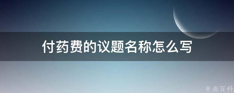 1、直接明确:可以使用类似付药费议题或药费支付问题的直接表述方式,清楚地传达议题的主题。