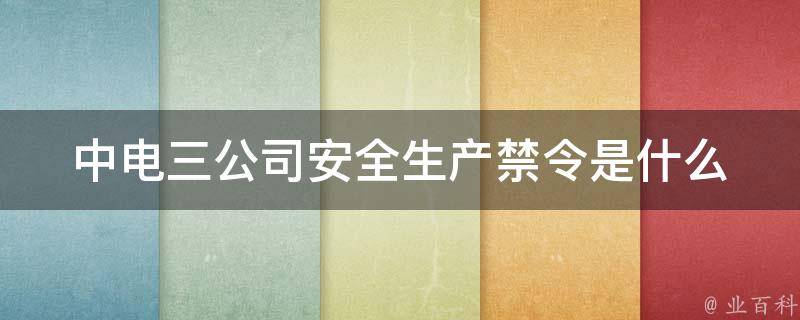 中电三公司安全生产禁令是中国电力公司三峡集团公司对于安全生产的禁止性规定或措施。安全生产禁令是为了保障企业和员工的安全,在特定情况下,公司会发布明确的指示或规定,禁止或限制某些活动、操作或行为,防止安全事故的发生或减少安全风险。