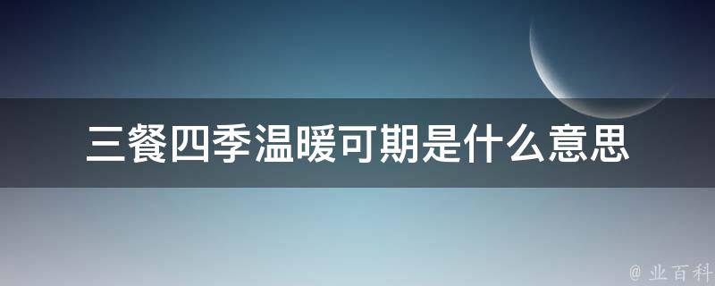 三餐四季温暖可期是一个形象化的表达,意味着在所有的日子、每一天以及一年四季都有充足的食物和温暖的生活环境。三餐指的是每天的早餐、午餐和晚餐,表示每日的食物供应;四季表示一年四季,代表每个季节;温暖可期表示预期和期盼可得到温暖的生活条件。