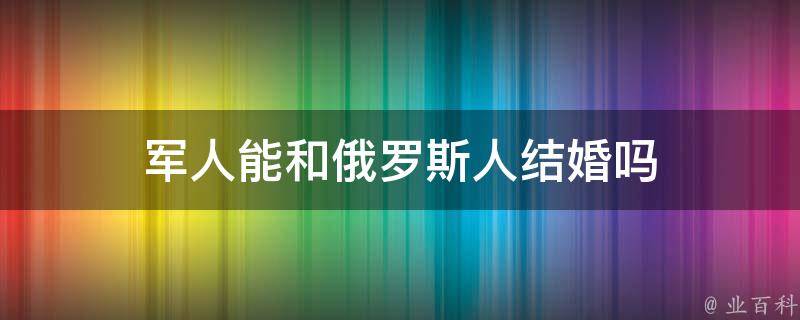 军人不能和俄罗斯人结婚。根据《军队贯彻实施若干问题的规定》第三条规定,现役军人的配偶,应当是政治可靠、思想进步、品行端正的中华人民共和国公民。现役军人是指中国人民解放军和中国人民武装警察部队的现役军(警)官、文职干部、士兵和具有军籍的学员。