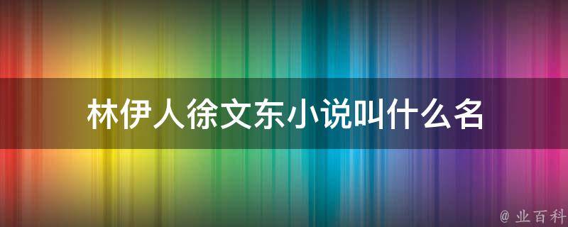 林伊人徐文东的小说叫:《都市无敌神医》。这是一部都市励志小说,讲述了一个穷小子靠着自己的医术名扬天下、功成名就的故事。小说可以在笔趣阁、无名小说网、言情小说网等平台阅读。