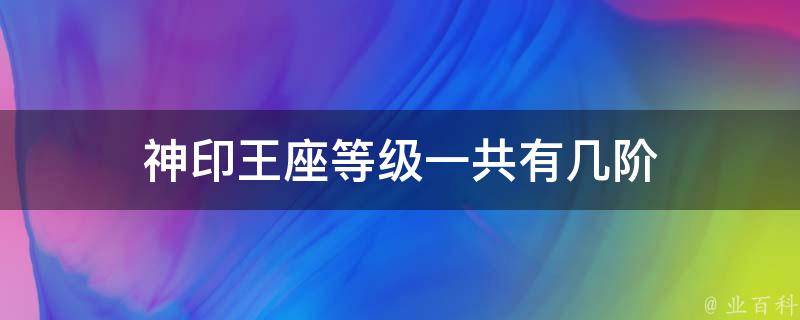 神印王座等级一共有9阶。在《神印王座》中,实力划分九阶是从低到高分别为:初阶、中阶、高阶、顶阶、极阶、境界、王者、圣者和神级。在往上就是神印王座骑士,然而这并不是十阶,而是一个非常特殊的境界存在,因此神印王座等级一共有9阶。