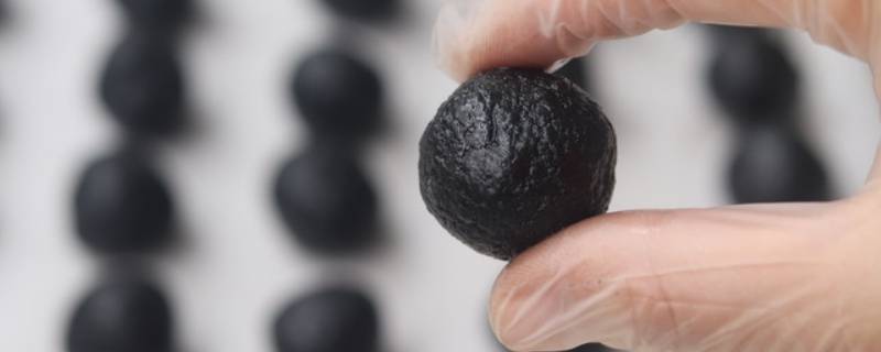 5、把煮好的蜂蜜放入黑芝麻中,拌匀,用手揉成光滑的黑芝麻丸。