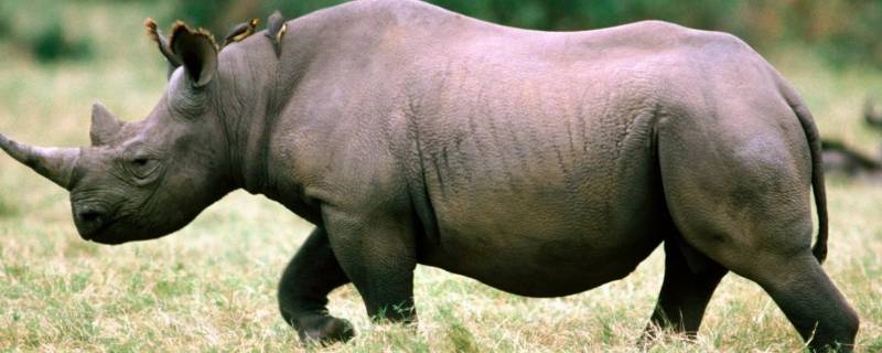 犀牛:是哺乳纲、犀科的总称, 有4属5种。是世界上最大的奇蹄目动物,犀类动物腿短、体肥笨拙,体长2.2-4.5米,肩高1.2-2米,体重2800-3000千克。前后肢均三趾;皮厚粗糙,并于肩腰等处成褶皱排列,毛被稀少而硬,甚或大部无毛;耳呈卵圆形,头大而长,颈短粗,长唇延长伸出;头部有实心的独角或双角(有的雌性无角),起源于真皮,角脱落仍能复生;无犬齿;尾细短,身体呈黄褐、褐、黑或灰色。