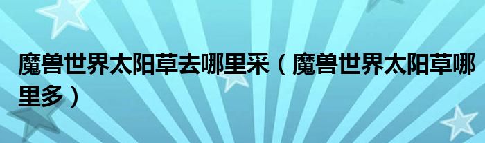 大家好,小华来为大家解答以上的问题。魔兽世界太阳草去哪里采,魔兽世界太阳草哪里多这个很多人还不知道,现在让我们一起来看看吧!