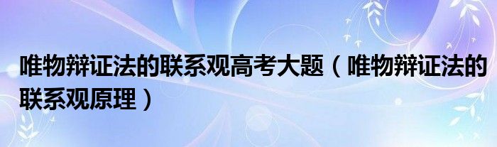 关于唯物辩证法的联系观高考大题,唯物辩证法的联系观原理这个很多人还不知道,今天菲菲来为大家解答以上的问题,现在让我们一起来看看吧!