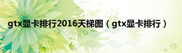 关于gtx显卡排行2016天梯图,gtx显卡排行这个很多人还不知道,今天菲菲来为大家解答以上的问题,现在让我们一起来看看吧!