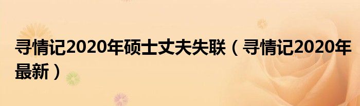 大家好,小联来为大家解答以上的问题。寻情记2020年硕士丈夫失联,寻情记2020年最新这个很多人还不知道,现在让我们一起来看看吧!