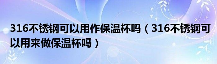 大家好,小联来为大家解答以上的问题。316不锈钢可以用作保温杯吗,316不锈钢可以用来做保温杯吗这个很多人还不知道,现在让我们一起来看看吧!