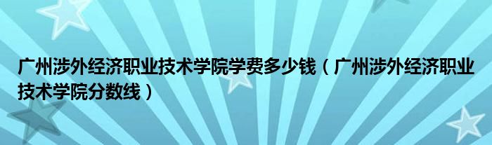关于广州涉外经济职业技术学院学费多少钱,广州涉外经济职业技术学院分数线这个很多人还不知道,今天菲菲来为大家解答以上的问题,现在让我们一起来看看吧!