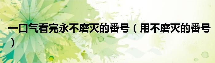 关于一口气看完永不磨灭的番号,用不磨灭的番号这个很多人还不知道,今天菲菲来为大家解答以上的问题,现在让我们一起来看看吧!