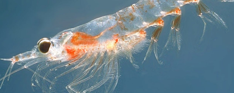 磷虾体形与小虾相似,身体很透明,没有鳃腔;鳃裸露在外,直接浸浴在水中;腹部共有六节,末端有一个尾节;有八对胸肢,胸肢都是双肢型。胸肢上没有特化的颚足,眼柄腹面及腹部的附肢上,基部都有一些球状发光器,可以发出磷光,因此被称为磷虾。