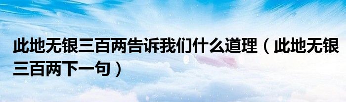 大家好,小夏来为大家讲解下。此地无银三百两告诉我们什么道理,此地无银三百两下一句很多人还不知道,现在让我们一起来看看吧!