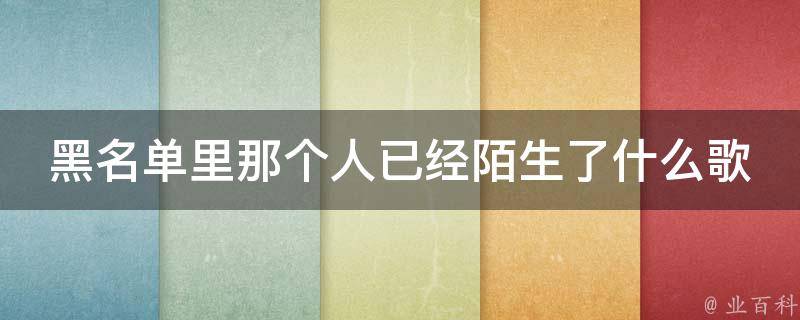 黑名单里那个人已经陌生了是歌曲《两个世界》,是由杨小壮作词、作曲,杨小壮演唱的歌曲,发行于2020年4月29日。部分歌词是:回忆里的声音,让我有些怕,黑名单里那个人,已经陌生啦,我在没有你的角落里,一人思绪万千。