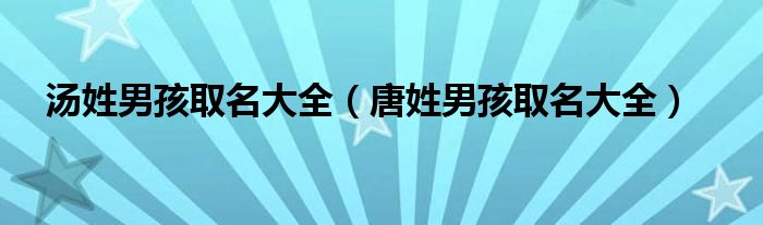 大家好,小联来为大家解答以上的问题。汤姓男孩取名大全,唐姓男孩取名大全这个很多人还不知道,现在让我们一起来看看吧!