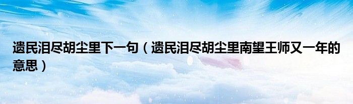 关于遗民泪尽胡尘里下一句,遗民泪尽胡尘里南望王师又一年的意思这个很多人还不知道,今天菲菲来为大家解答以上的问题,现在让我们一起来看看吧!