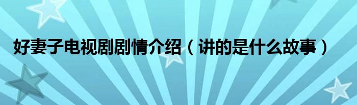 各位网友们好,我是编辑小夏,为大家解答好妻子电视剧剧情介绍,讲的是什么故事问题。一起往下看看