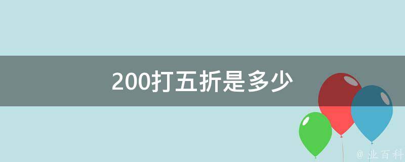 200打五折是100。打5折就是原价乘以0.5,假如商品的原价为200元,打5折后为:200*0.5=100元。折扣,指买卖货物时按原价的若干成计价,如按九成,叫九折或九扣。折扣有一般折扣,也有特殊折扣,还有年尾采购折扣等。