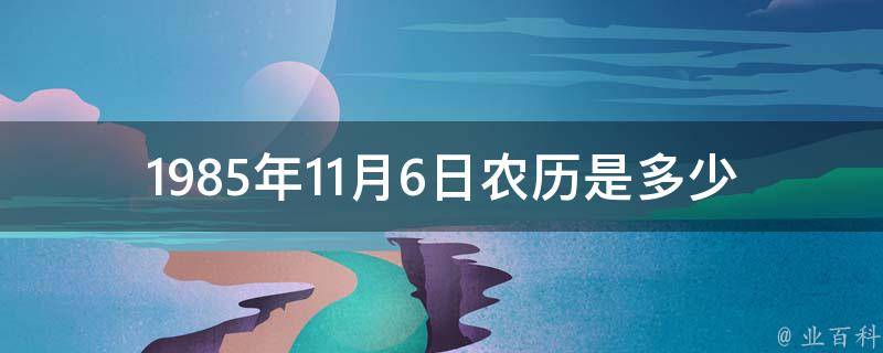 1985年11月6日农历是1985年九月廿四。公元1985年,公历平年,共365天,53周。农历乙丑年(牛年),无闰月,共354天。1985年春节在2月20日,是有史以来罕见的春节最晚的一年。