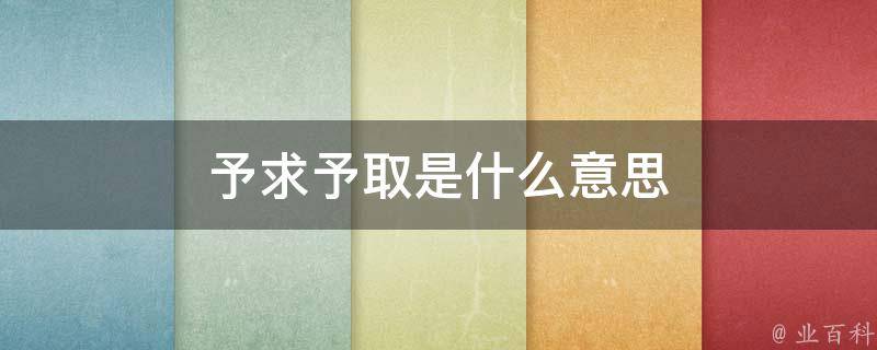 予求予取原指从我这里求(财物),后指任意索取。出自《左传-僖公七年》:唯我知女(汝),女专利而不厌,予取予求,不女疵瑕也。予求予取的近义词是随心所欲。