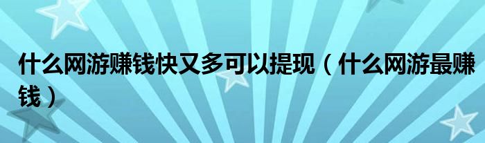 大家好,我是小科,我来为大家解答以上问题。什么网游赚钱快又多可以提现,什么网游最赚钱很多人还不知道,现在让我们一起来看看吧!