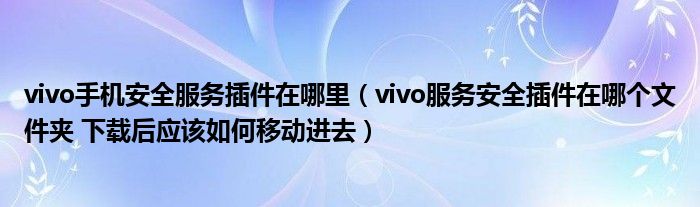 大家好,小联来为大家解答以上的问题。vivo手机安全服务插件在哪里,vivo服务安全插件在哪个文件夹 下载后应该如何移动进去这个很多人还不知道,现在让我们一起来看看吧!
