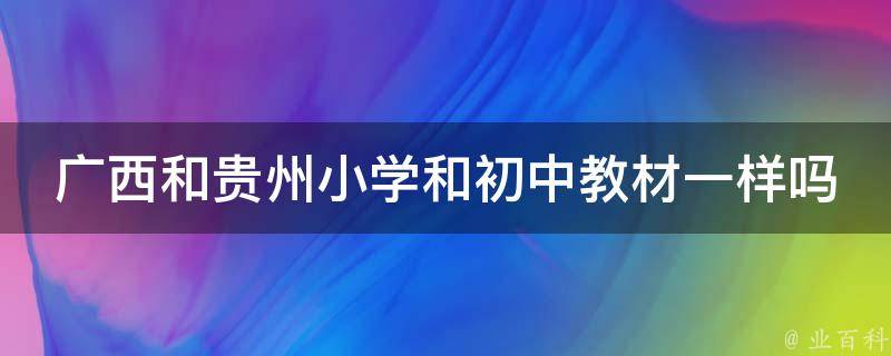 广西和贵州小学和初中教材不一样,九年义务教育课本的版本有人教版(由人民教育出版社出版)、沪教版(由上海教育出版社出版)、苏教版(由江苏教育出版社出版)、浙教版(由浙江教育出版社出版)、外研版(由外语教学与研究出版社出版)等。