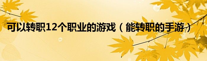大家好,我是小科,我来为大家解答以上问题。可以转职12个职业的游戏,能转职的手游很多人还不知道,现在让我们一起来看看吧!