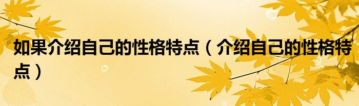 大家好,我是小科,我来为大家解答以上问题。如果介绍自己的性格特点,介绍自己的性格特点很多人还不知道,现在让我们一起来看看吧!