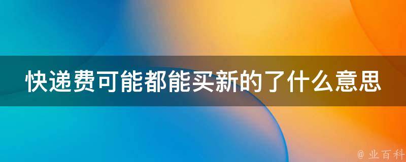 快递费可能都能买新的了的意思是为了购买某件商品所支付的快递费用可能已经超过了商品本身的价值,购买这个商品可能并不划算。这也表明这个商品的利润或者价值并不高,或者这个商品的重量或者大小导致了快递费用的增加。