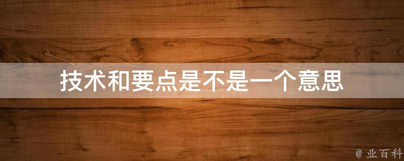 技术和要点不是一个意思。技术指的是在生产、制造、研究、开发或者其它领域中,通过实践和知识积累所获得的方法、技巧或技能。这些技术通常涉及到具体的操作、工艺或方法,可以用于解决问题、改进产品或提高效率。要点则指的是在某个领域或某个过程中最重要的、核心的或基本的部分。这些要点通常是在学习、研究、实践或讨论中需要特别关注和掌握的关键信息或主要观点。