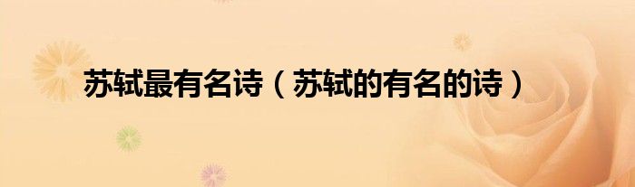 大家好,小华来为大家解答以上的问题。苏轼最有名诗,苏轼的有名的诗这个很多人还不知道,现在让我们一起来看看吧!