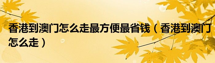 香港到澳门怎么走最方便最省钱(香港到澳门怎么走)