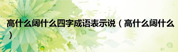 大家好,我是小科,我来为大家解答以上问题。高什么阔什么四字成语表示说,高什么阔什么很多人还不知道,现在让我们一起来看看吧!
