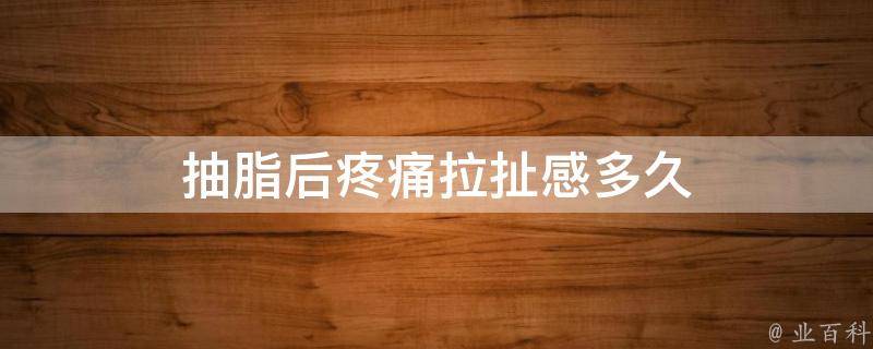 抽脂后疼痛拉扯感15-30天。抽脂手术是将脂肪抽出,会导致局部皮肤伴随拉扯感和不自然感。拉扯感的消失时间因个人体质而异,一般在15-30天,在恢复期间需要保证休息,避免做剧烈的运动,以免影响到抽脂效果。