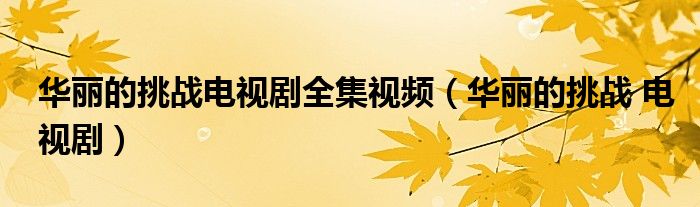 大家好,我是小科,我来为大家解答以上问题。华丽的挑战电视剧全集视频,华丽的挑战 电视剧很多人还不知道,现在让我们一起来看看吧!
