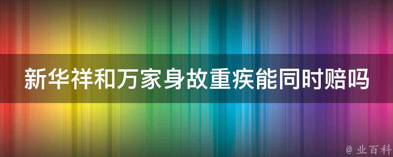 新华祥和万家身故重疾能同时赔。新华祥和万家保险计划是一款返还型保险产品,由两全保险和附加重大疾病保险组成。被保险人在保险期间内身故或确诊合同约定的重大疾病,保险公司会按照合同约定支付身故或重疾保险金。