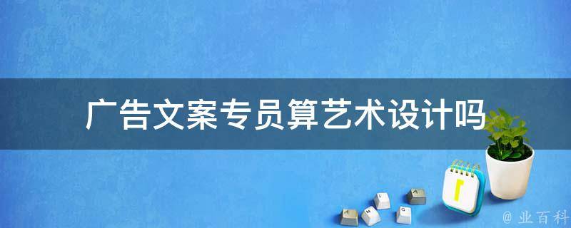广告文案专员不算艺术设计,属于广告学专业。艺术设计是一门独立的艺术学科,主要包含:工艺美术品制作与设计、环境设计、平面设计、多媒体设计等。它的研究内容和服务对象有别于传统的艺术门类。广告文案专员属于广告营销类职位类别。