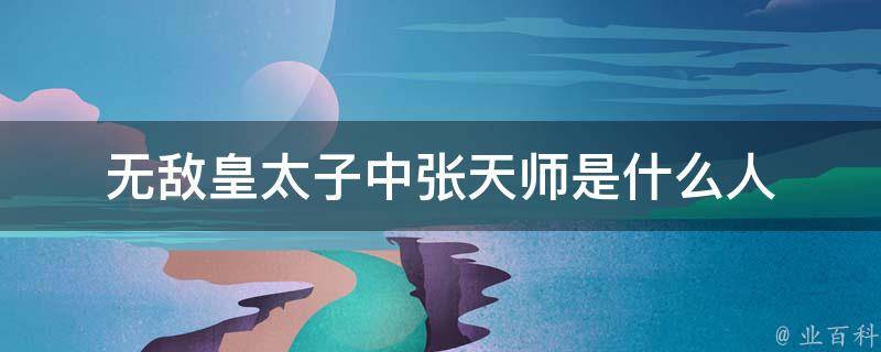 无敌皇太子中张天师是玉皇大帝通明宫下的尊神,张天师是指张道陵。张道陵,原名张陵,字辅汉,西汉开国功臣张良之后。因为天资聪慧,张道陵顺应当时的潮流成功进入太学学习儒家思想。但随着研究的深入,他发现自己所学的道理并非应对生死的奥义。于是张道陵转投到道家门下,创立正一道(又称天师道、五斗米道等,在各个时期称呼略有不同)。