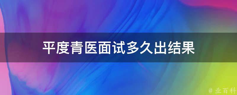 平度青医面试通常两天左右出结果。面试内容包括专业素质、综合素质和举止仪表等。面试采用答辩+专业技能测试的方法进行,考生需持身份证和面试通知单到指定地点参加面试,经审核确认后,考生按顺序依次进入考场,在规定时间内完成面试。