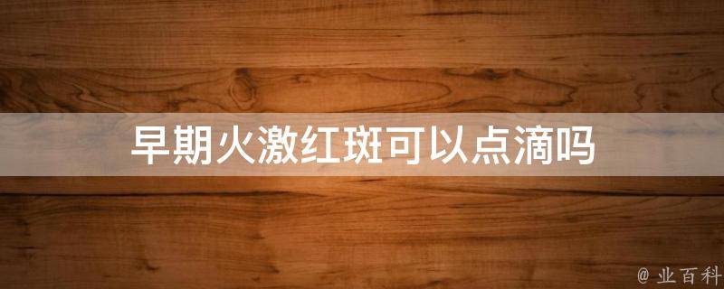 视情况而定。火激红斑是一种皮肤病,通常是由于皮肤长时间暴露在高温或低温环境下导致的。早期症状包括皮肤发红、瘙痒、灼热感等。如果症状较轻,可以通过局部涂抹药物或口服药物来治疗。如果症状较严重或持续时间较长,建议及时就医,根据医生的建议采取相应的治疗措施,如点滴治疗等。