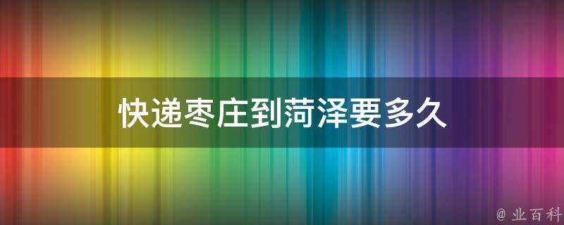 快递从枣庄到菏泽一般需要1~2天。快递时效性会受多种因素影响,如收货地址、收货量、交通状况、快递公司因素等,如果快递没有按时到达,可以上网查询或是打电话催促一下快递公司,顺便跟踪一下货物情况。