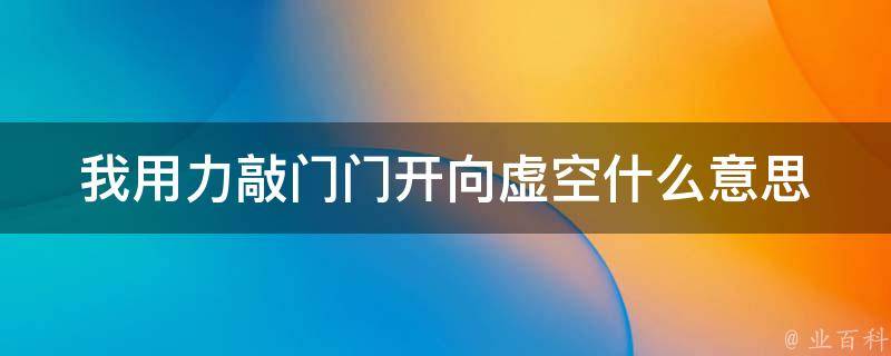 我用力敲门门开向虚空意思是我非常努力的想要敲开某一扇门,但是门里面什么也不存在,开向空旷无人之处,比喻心中无着落。虚空是汉语词汇,意思是真正的什么也不存在的状态,即无的状态;亦指天空、空中和空旷无人之处。