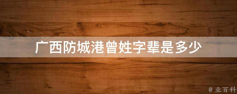 广西防城港曾姓字辈是55个。具体有宏、闻、贞、尚、衍、兴、毓、传、纪、广、昭、宪、庆、繁、祥、令、德、维、垂、佑、钦、绍、念、显、扬、鼎、新、开、国、运、克、服、振、家、声、建、道、敦、安、定、懋、修、肇、懿、常、裕、文、焕、锦、瑞、永、袭、世、绪、昌。