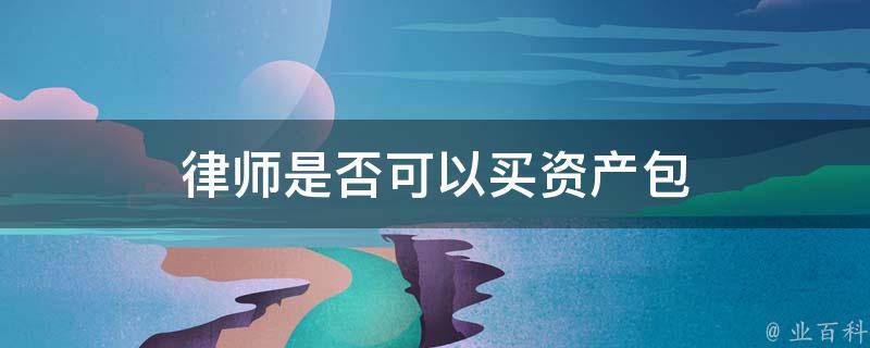 律师可以买资产包。资产包是由一组资产组成的集合,这些资产通常由同一个主人拥有或管理,并且通常是在同一个地点或领域内运营。资产包可以包括各种类型的资产,例如房地产、股票、债券、现金、珠宝等。一般不良资产或金融机构打包处置的抵押物也会组成资产包。
