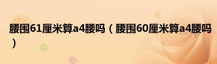 大家好,小夏来为大家讲解下。腰围61厘米算a4腰吗,腰围60厘米算a4腰吗很多人还不知道,现在让我们一起来看看吧!