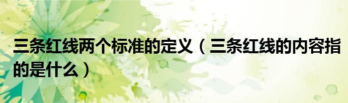 大家好,小联来为大家解答以上的问题。三条红线两个标准的定义,三条红线的内容指的是什么这个很多人还不知道,现在让我们一起来看看吧!